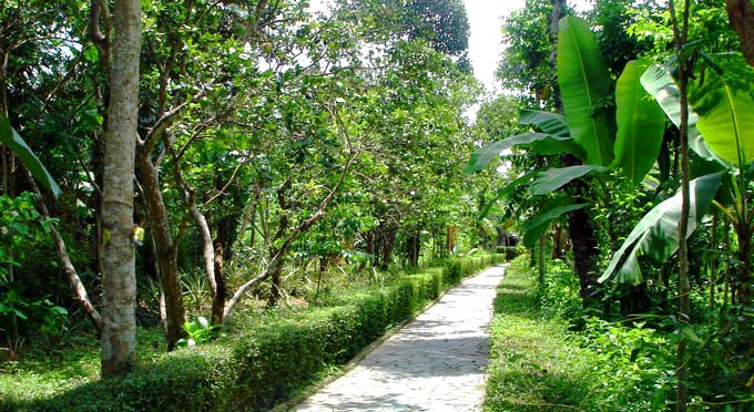 Continuation à vélo tout au long de la rivière des parfums en pleine nature, parmi les fleurs, et les milliers de pamplemoussiers. Arrêt au marché local, pour acheter si vous le souhaitez quelques cahiers, crayons, ou stylos, pour offrir à l’orphelinat.